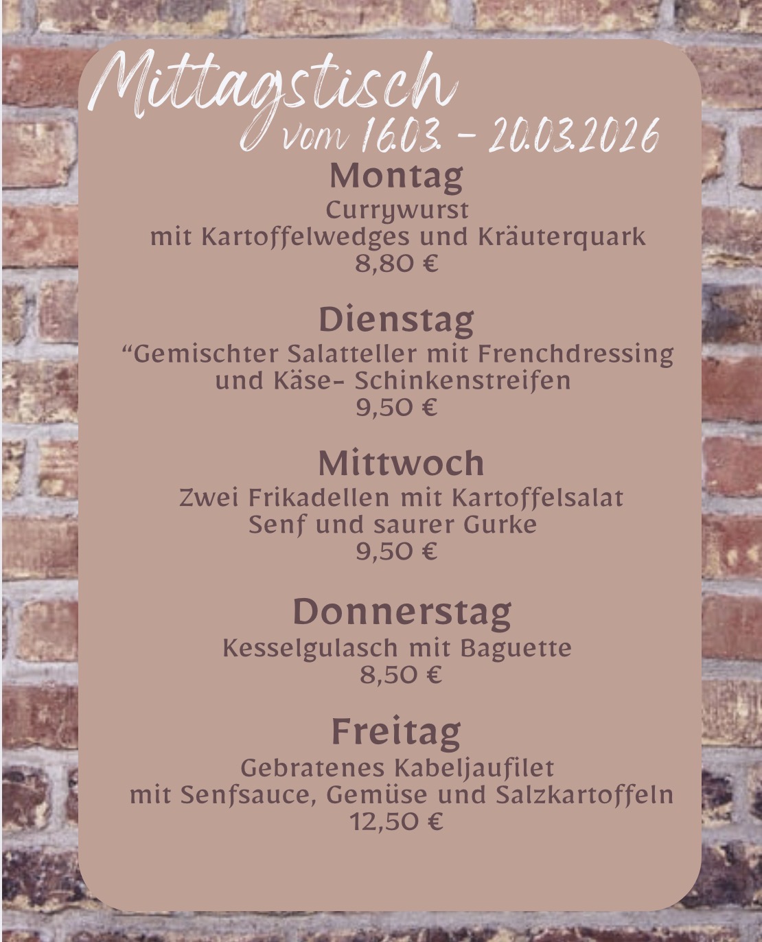 Unsere Speisekarte verbindet regionale Spezialitäten mit Klassikern der deutschen Küche. Frische Zutaten, sorgfältige Zubereitung und ein Schuss Kreativität machen jeden Besuch zum Genuss.